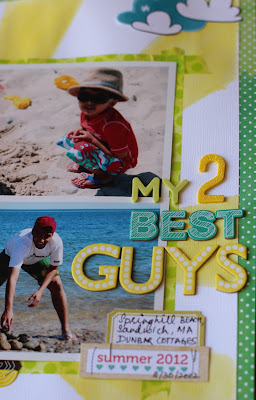 When I saw this color combo at Color Me Scrappy, I knew the photos I was going to use immediately. It had to be bright and fun! I used SC Sunburst mask to do the sunrays. I water-colored instead of misting to give it a washed look. Don't know if I succeeded! But I like it! Added some washi under the photos to pop them up a bit.